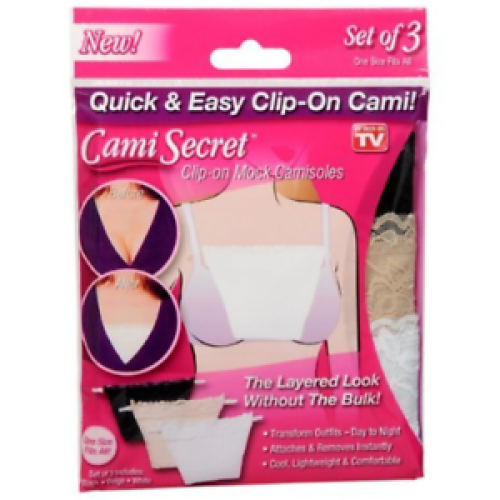 With Cami Secret you can get that layered look without the bulk.It is a new fashion accessory that looks just like a camisole, but isn’t and is much more stylish and lightweight. The Cami Secret has specially designed clips that can attach to any bra straps. It slides up and down, letting you decide how much you need to cover. You’ll get the perfect solution for controlling the neckline of low cut tops, sweaters, dresses, and more. Use it to expand your entire wardrobe and add a touch of color instantly with the Cami Secret. Each Cami Secret is made from breathable material with a pretty lace border. Which is one-size fits all and are also machine washable for easy cleaning.
