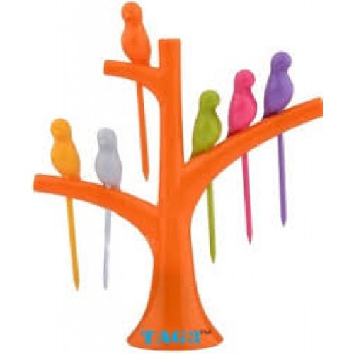 Your children aren’t eating fruits? Bring home this colorful and attractive Humming Bird Fruit Fork and make your child fruit eating fun. Six tiny skewers made from 100% reusable plastic are slotted into the holes of an arboreal stand so that their adorable avian tops assemble the image of birds on branches. These stylish and reuse-able fork set is easily washable and the Eco-friendly material is safe and reliable to use. Complete your fruits accessories and promote healthy eating with Bird Fork Set. This pick set’s parts can be conveniently washed and used over and over again. It is highly durable and adds color to your table when not in use.
